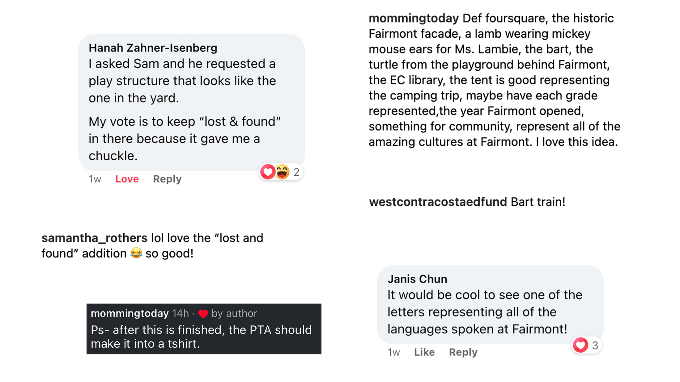 We reached out to the community to hear what they’d like to see inside the Fairmont letters. Responses were heartfelt, insightful and aligned with this mural’s intention to showcase student life.